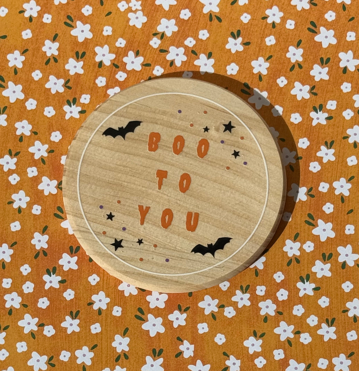 Circular unfinished wood coaster with non-slip felt dots on the bottom for security.