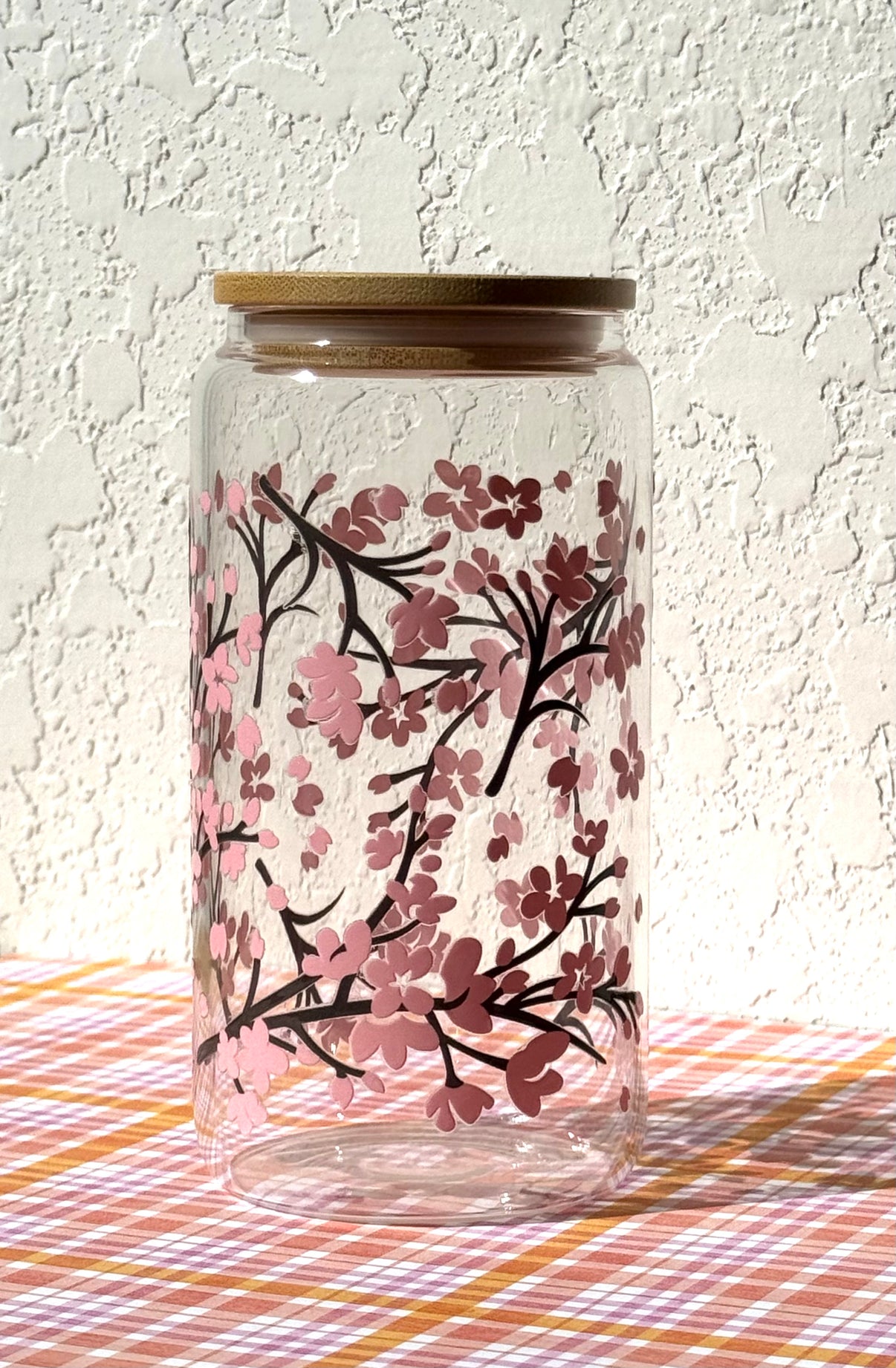 Sakura in Bloom. Perfect for coffee, juices, or any other drink this 16 oz glass tumbler comes with a matching lid and a straw. Perfect for use in the home or on the go!